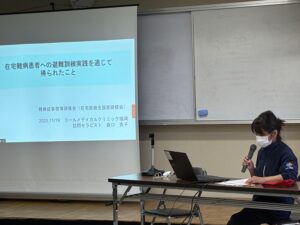 令和7年11月19日(水)に開催された「難病従事者等研修会(在宅医療支援者研修会)」において、当院の訪問セラピスト(理学療法士)が事例報告を行いました。